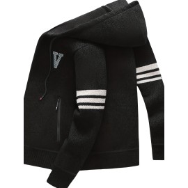 Elegant Mid Stretch Retro Cardigan Vest, Men's Casual Vintage Style V Neck Zip Up Cardigan Sweater Coat For Fall Winter